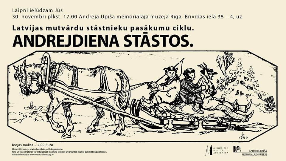 Piektdien, 30. novembrī, plkst. 17.00 ar sarīkojumu “Andrejdiena stāstos” Andreja Upīša memoriālajā muzejā Rīgā, Brīvības ielā 38-4, turpināsies Latvijas mutvārdu stāstnieku pasākumu cikls.